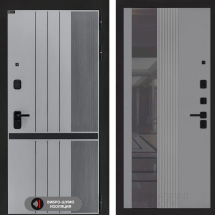 Входная дверь SKYLAB с Зеркалом 32 тонированным — Серый рельеф софт