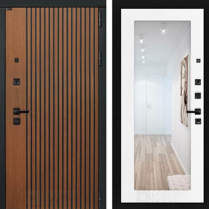 Входная дверь STORM с Зеркалом 18 — Белое дерево