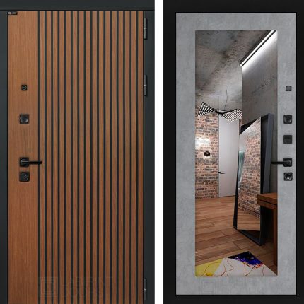 Входная дверь STORM с Зеркалом 18 — Бетон светлый