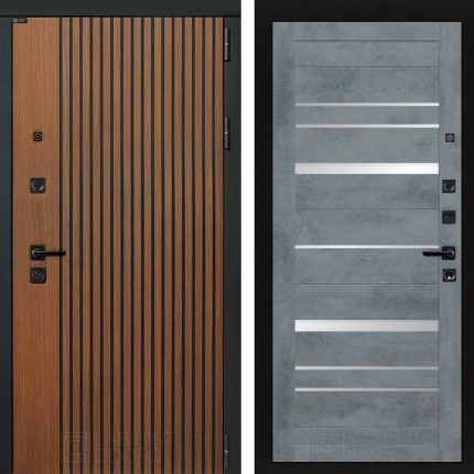 Входная дверь STORM 20 — Бетон темный, зеркальные вставки