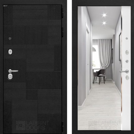 Входная дверь PAZL с зеркалом Панорама — Белый софт