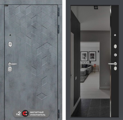 Входная дверь Бетон с зеркалом Максимум — Софт Грей