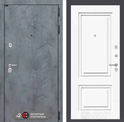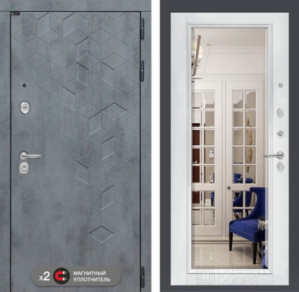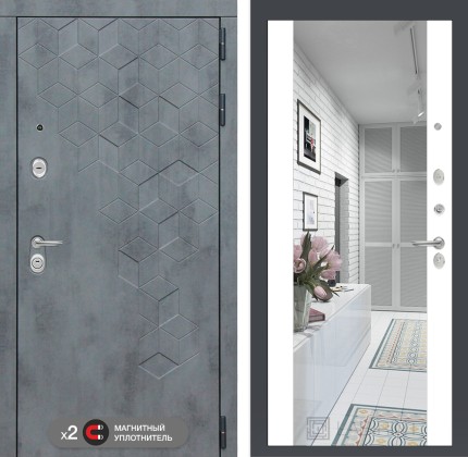 Входная дверь Бетон с Зеркалом Фацет — Белый софт