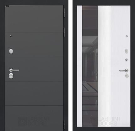 Входная дверь ART с Зеркалом 32 тонированным — Белый рельеф софт