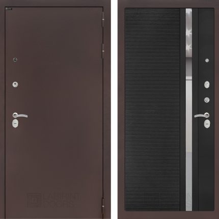 Входная дверь CLASSIC антик медный 31 — Черный кварц, зеркальная вставка с тонировкой