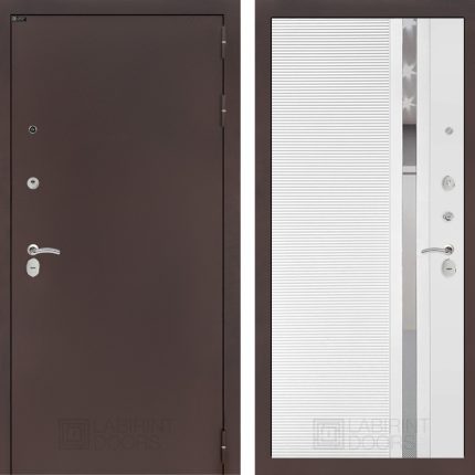 Входная дверь CLASSIC антик медный 31 — Белый софт, зеркальная вставка с тонировкой
