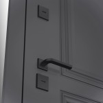Полный комплект: Черная фурнитура (полимерная): накладки сувальдные со шторкой, дверная ручка, ночная задвижка, металлический эксцентрик с защитной вставкой.
