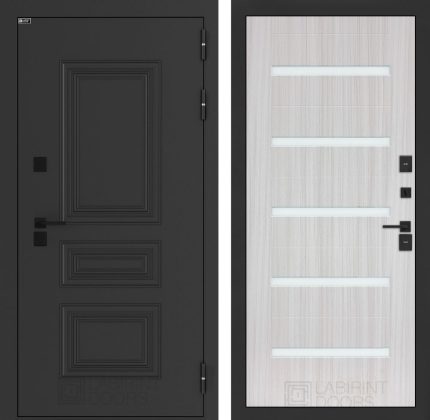 Входная дверь Аляска Лайт 01 — Беленый дуб, стекло черное
