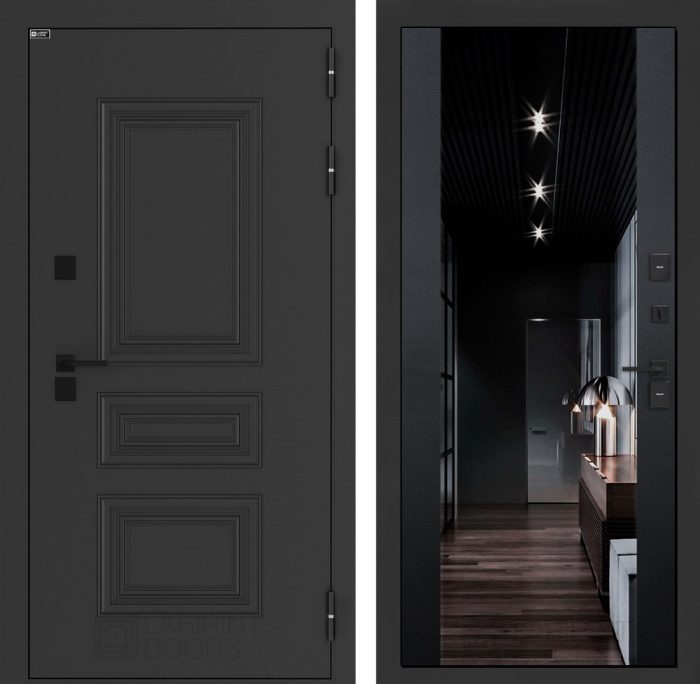 Входная дверь Аляска Лайт с Зеркалом тонированным Максимум — Черный кварц