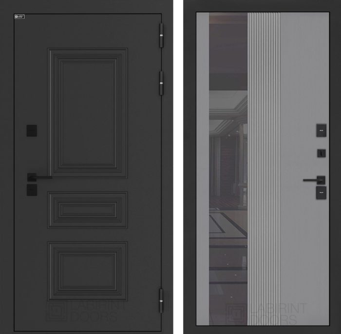 Входная дверь Аляска Лайт с Зеркалом 32 тонированным — Серый рельеф софт