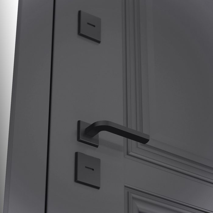 Полный комплект=’Черная фурнитура (полимерная): накладки сувальдные со шторкой, дверная ручка, ночная задвижка, металлический эксцентрик с защитной вставкой.’