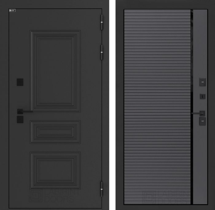 Входная дверь Аляска Лайт 22 — Графит софт, черная вставка