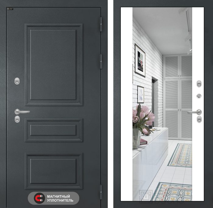 Входная дверь Атлантик с зеркалом Максимум — Белый софт