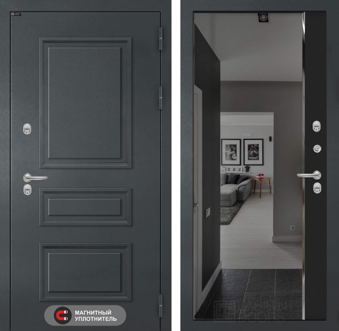 Входная дверь Атлантик с Зеркалом 32 тонированным - Серый рельеф софт 53 300,00 ₽
