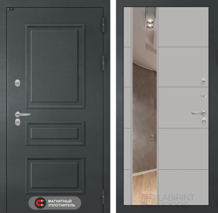 Главная Двери с терморазрывом Атлантик Входная дверь Атлантик с Зеркалом 19 — Грей софт