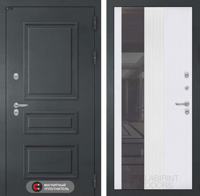 Входная дверь Атлантик с Зеркалом 32 тонированным — Белый рельеф софт