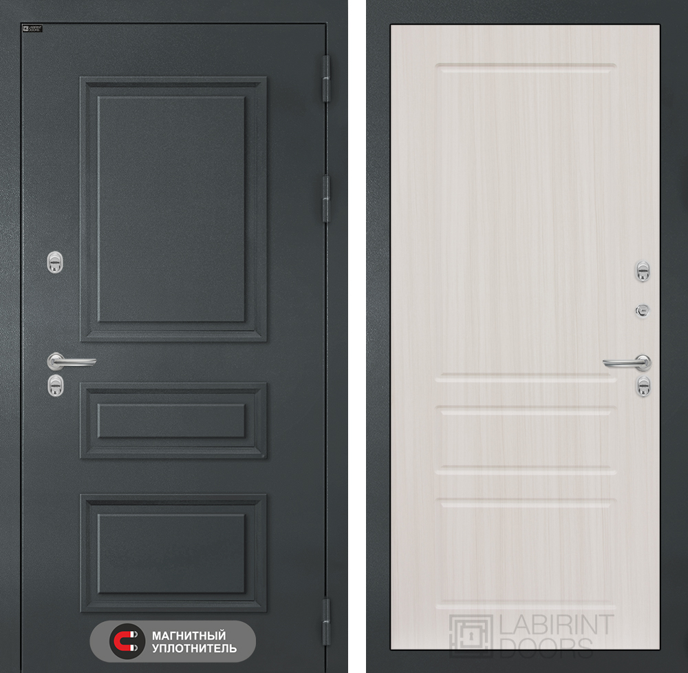 Толщина, вес: Толщина двери 155 мм, полотно 105 мм. Вес до 110 кг