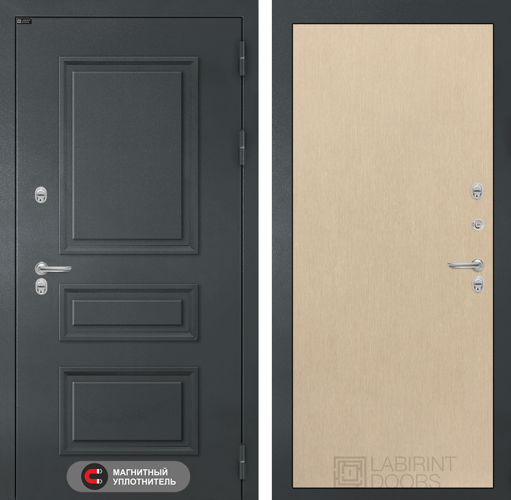 Толщина, вес: Толщина двери 155 мм, полотно 105 мм. Вес до 110 кг