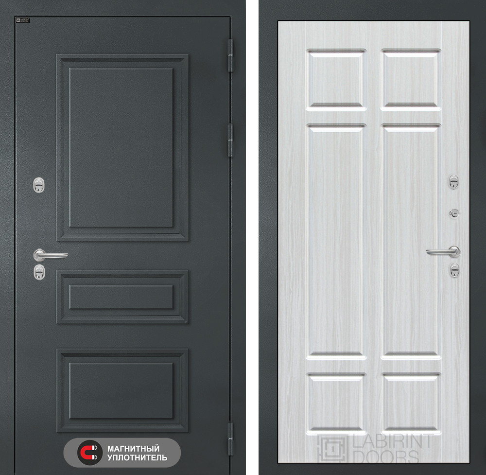 Толщина, вес: Толщина двери 155 мм, полотно 105 мм. Вес до 110 кг
