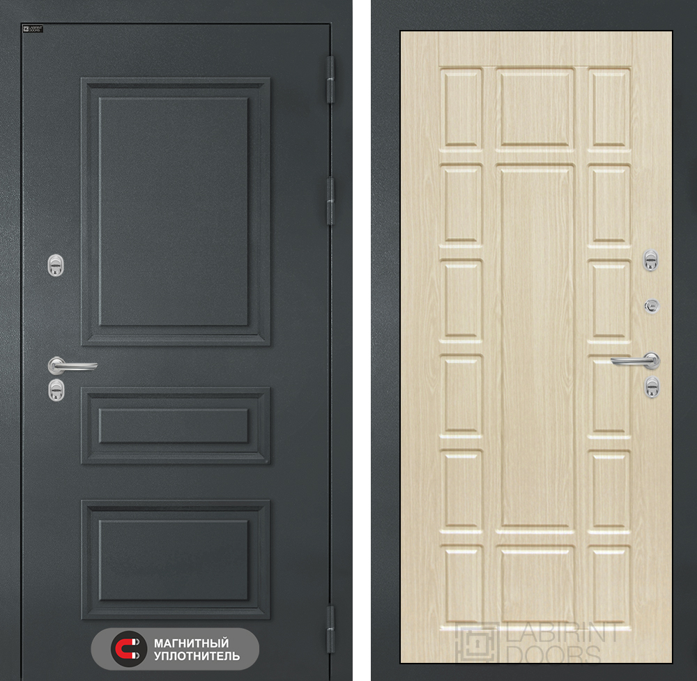 Толщина, вес: Толщина двери 155 мм, полотно 105 мм. Вес до 110 кг