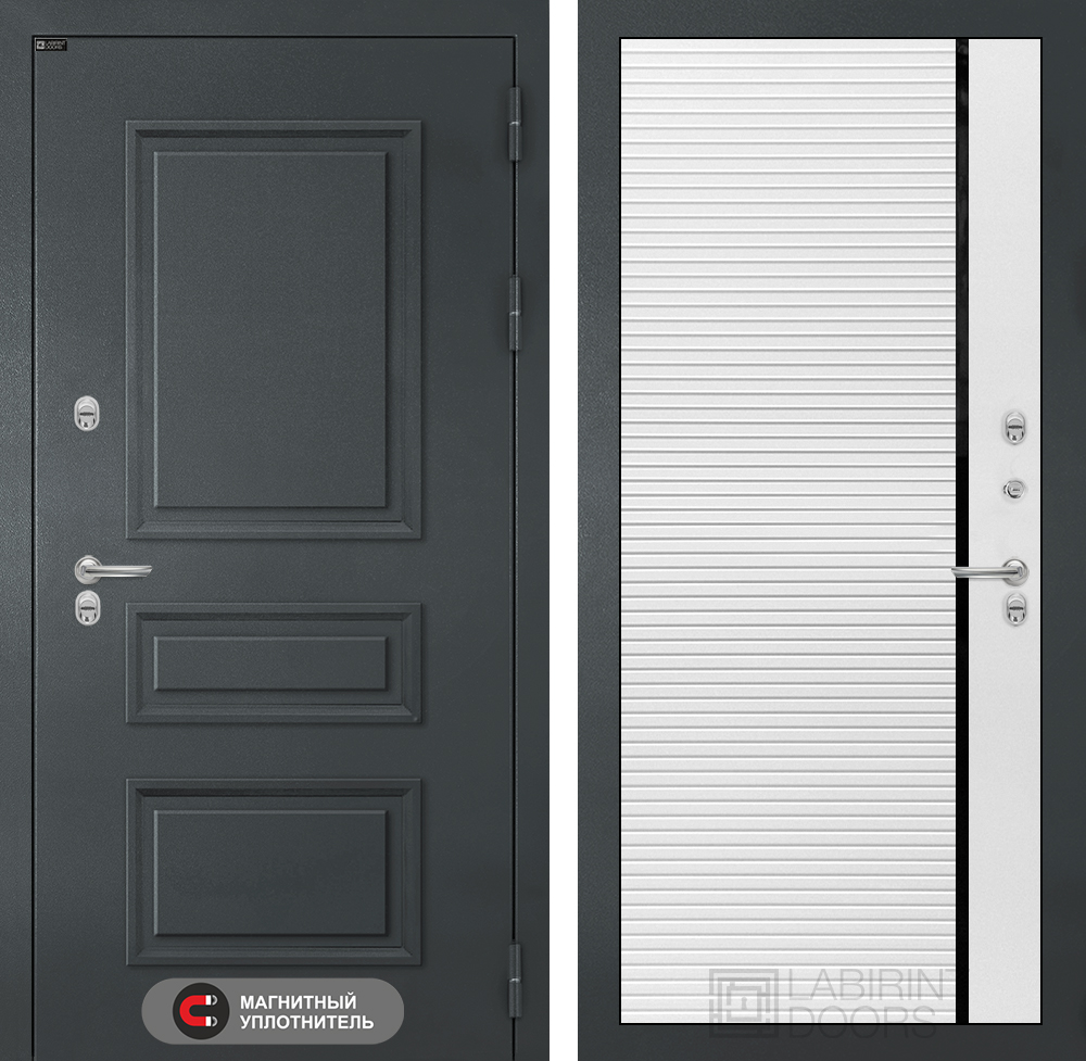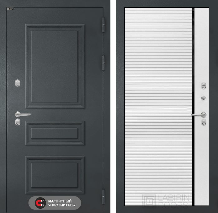 Входная дверь Атлантик 22 — Белый софт, черная вставка