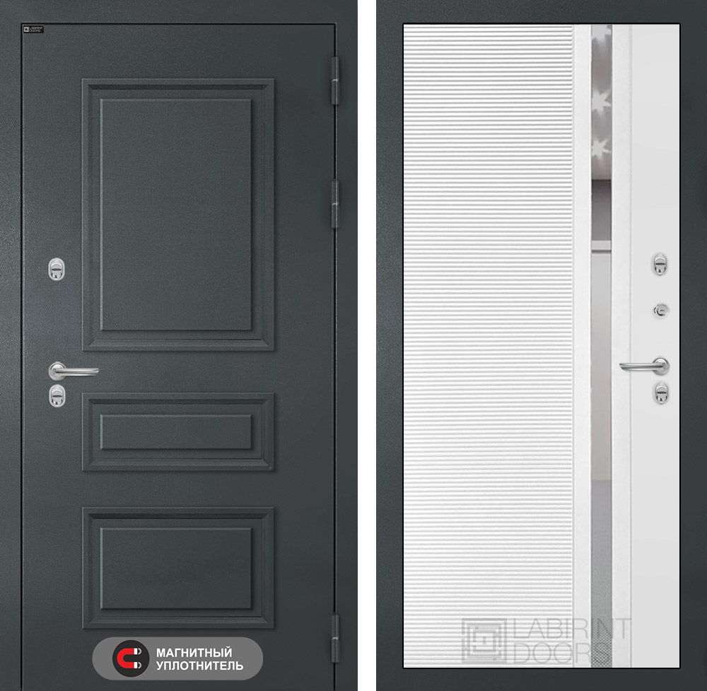 Внутренняя отделка: Фрезерованная МДФ панель 10 мм с зеркальной тонированной вставкой 60 мм, цвет «Белый софт»
