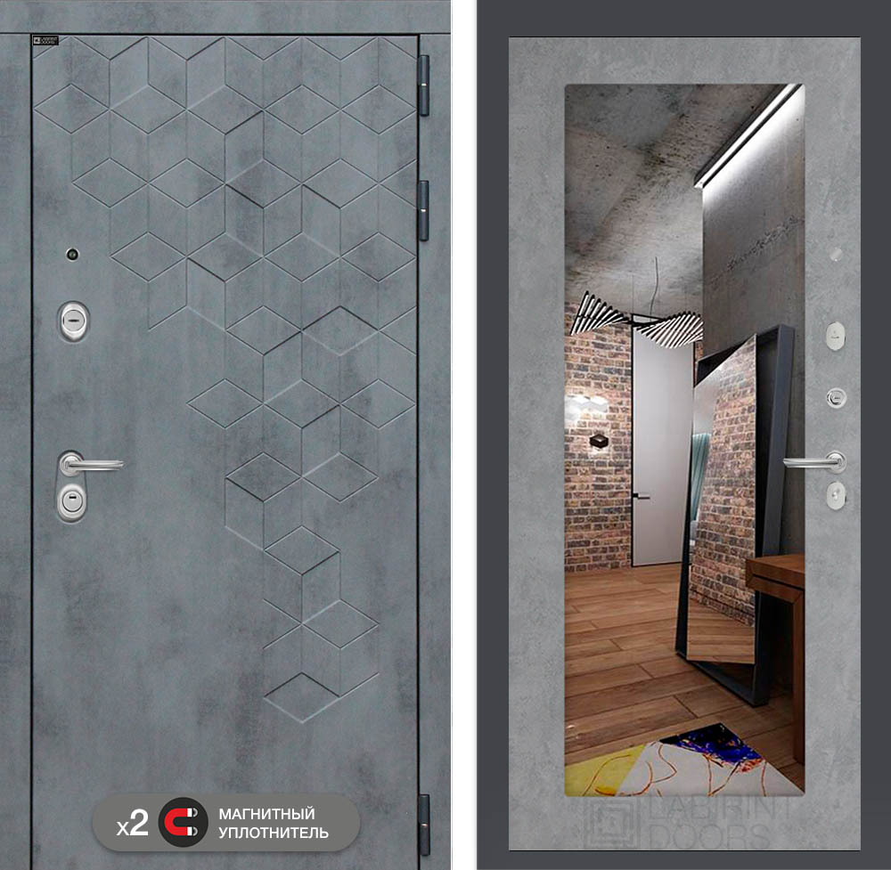 Внутренняя отделка: Декоративная MDF панель 12 мм с Зеркалом, цвет «Бетон светлый»