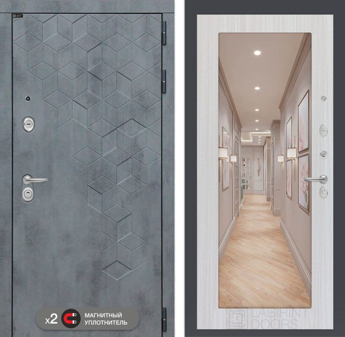 Входная дверь Бетон с зеркалом 19 - Грей софт