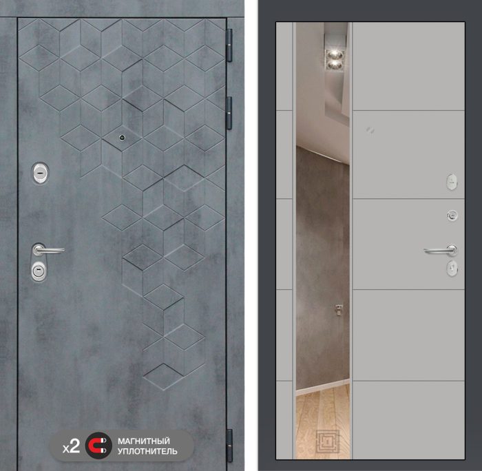 Входная дверь Бетон с зеркалом 19 — Грей софт