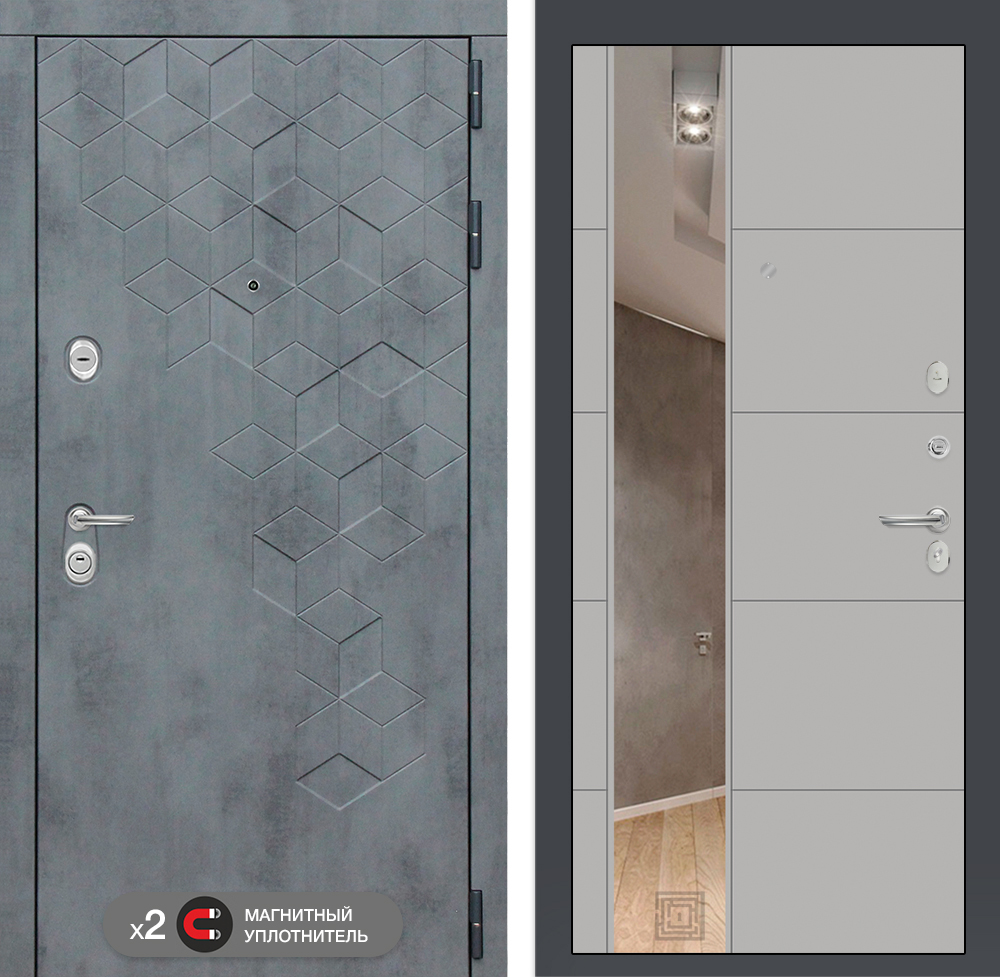 Внутренняя отделка: Декоративная MDF панель 12 мм с Зеркалом (ширина 230 мм), цвет «Грей софт»