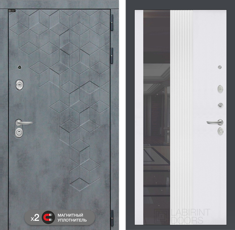 Внутренняя отделка: Фрезерованная МДФ панель 10 мм с тонированным зеркалом (ширина 244 мм), цвет «Белый рельеф софт»