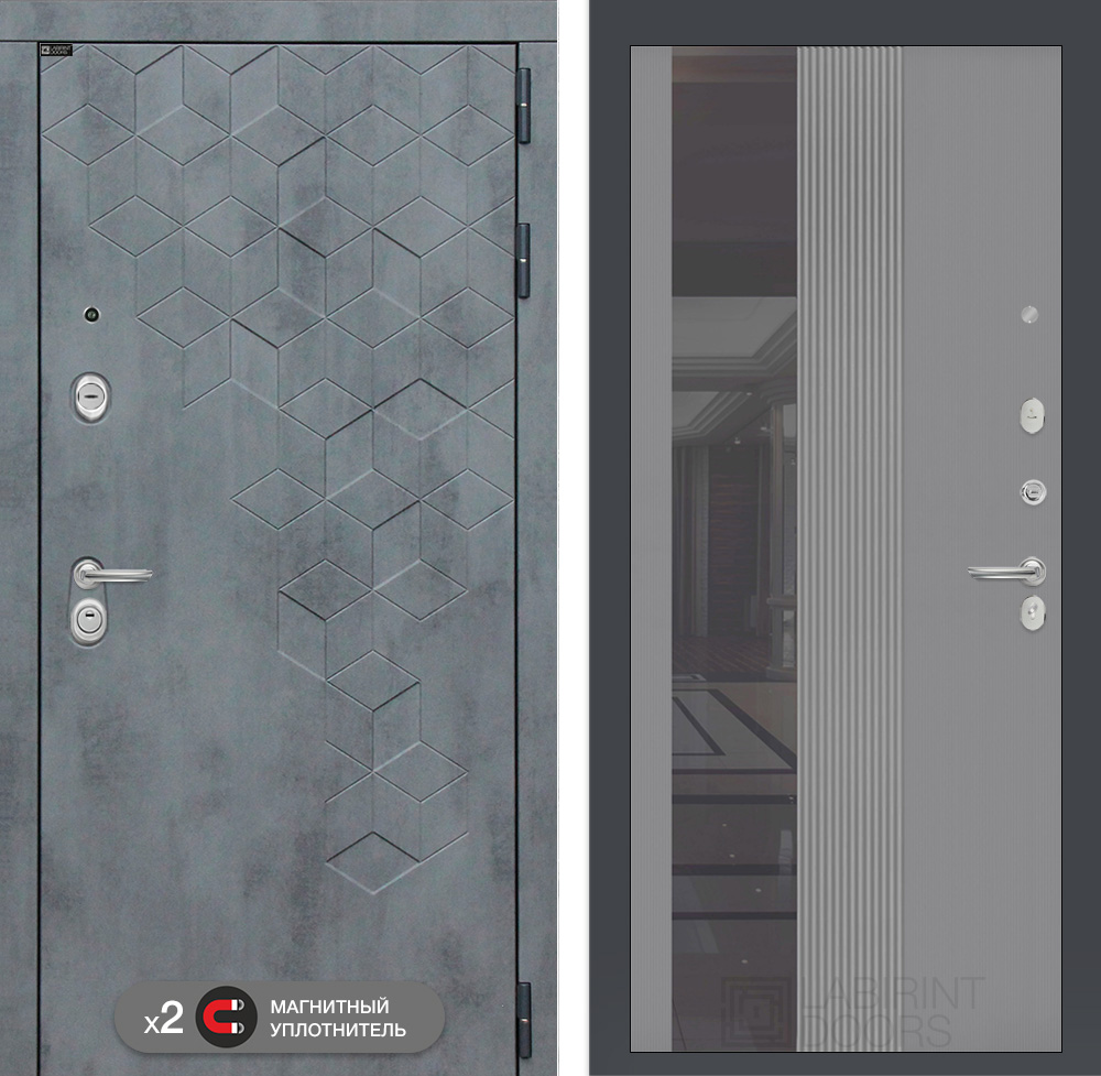 Внутренняя отделка: Фрезерованная МДФ панель 10 мм с тонированным зеркалом (ширина 244 мм), цвет «Серый рельеф софт»