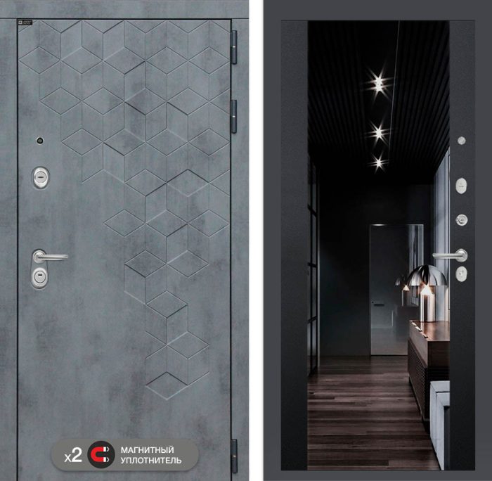 Входная дверь Бетон с тонированным зеркалом Максимум — Черный кварц