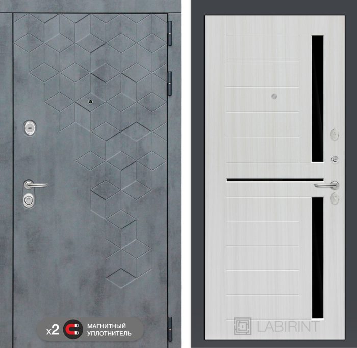 Главная Двери премиум Бетон Входная дверь Бетон 02 — Сандал белый, стекло черное