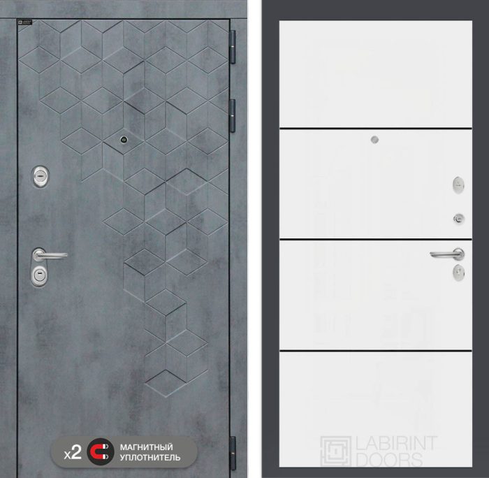 Входная дверь Бетон 25 — Белый софт, черный молдинг