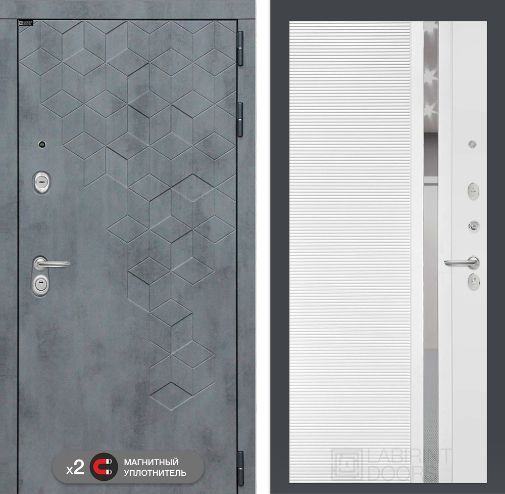 Внутренняя отделка: Фрезерованная МДФ панель 10 мм с зеркальной тонированной вставкой 60 мм, цвет «Белый софт»