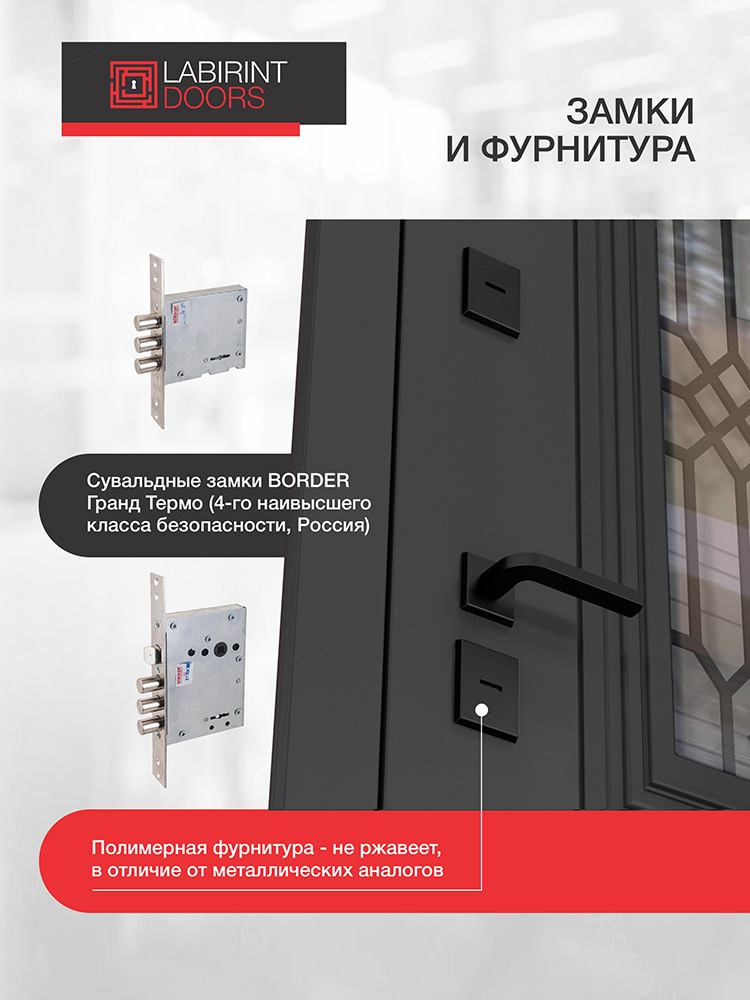Основной замок: Сувальдный BORDER Гранд Термо 3В 9-6Э (4-го наивысшего класса безопасности, Россия)