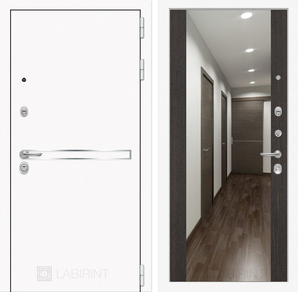 Отделка снаружи: Металл с покрытием «Шагрень» белая, зеркальная вставка из нержавеющей стали