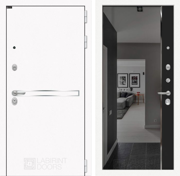 Отделка снаружи=’Металл с покрытием «Шагрень» белая, зеркальная вставка из нержавеющей стали’