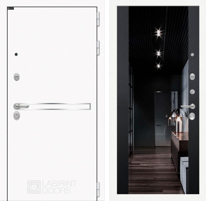Главная Двери эконом Лайн Входная дверь Лайн WHITE с Зеркалом тонированным Максимум — Черный кварц