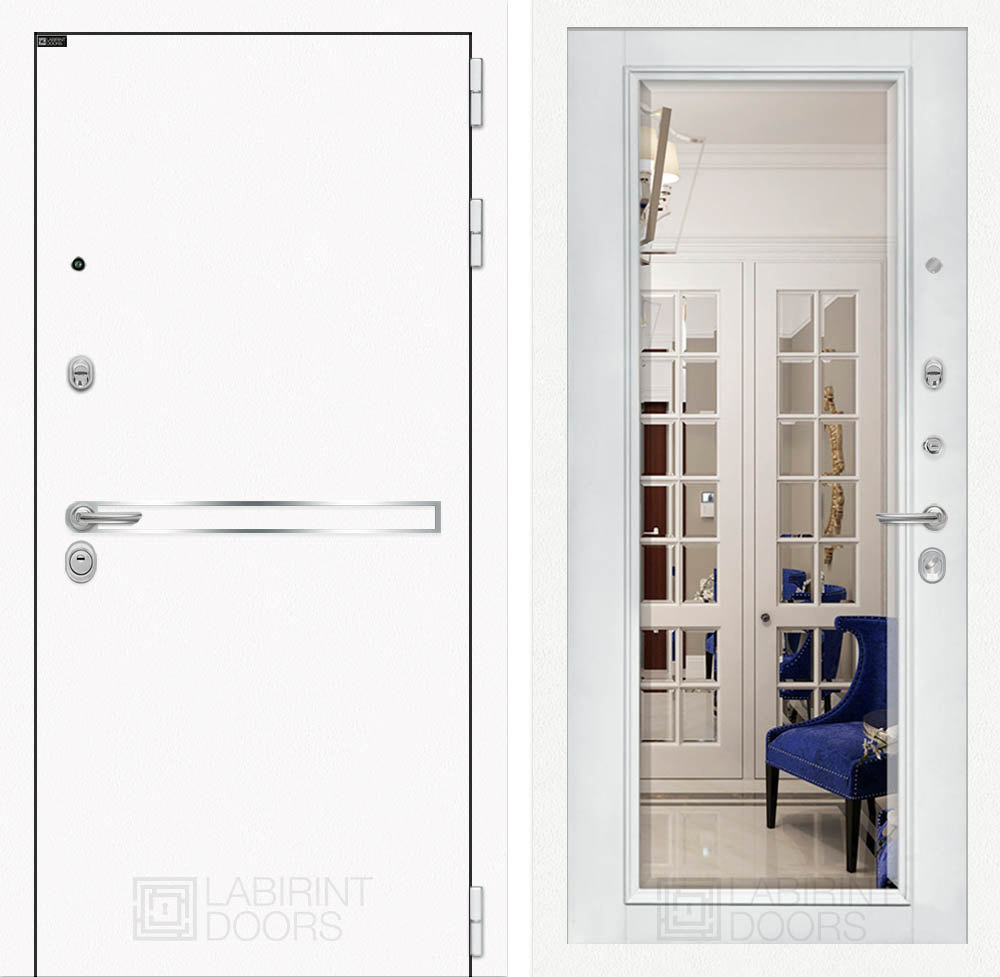 Отделка снаружи: Металл с покрытием «Шагрень» белая, зеркальная вставка из нержавеющей стали
