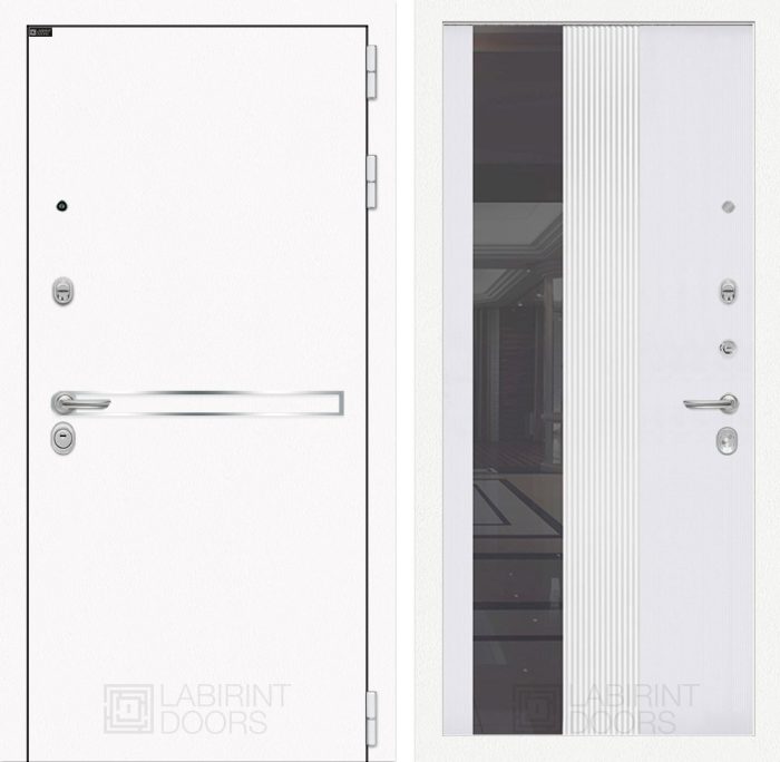 Отделка снаружи=’Металл с покрытием «Шагрень» белая, зеркальная вставка из нержавеющей стали’