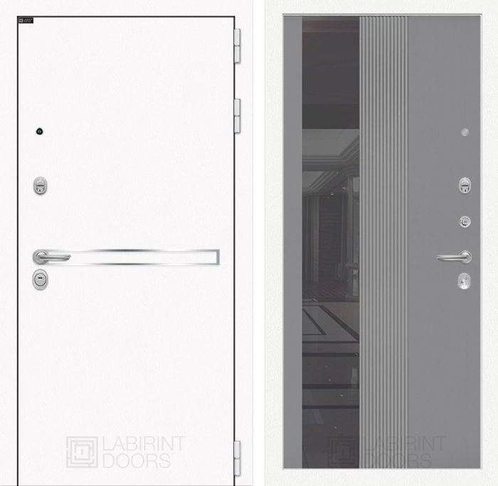 Отделка снаружи=’Металл с покрытием «Шагрень» белая, зеркальная вставка из нержавеющей стали’