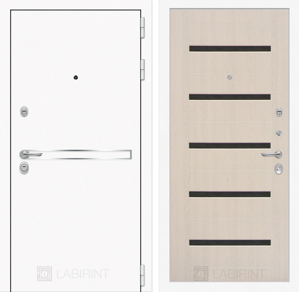 Отделка снаружи: Металл с покрытием «Шагрень» белая, зеркальная вставка из нержавеющей стали