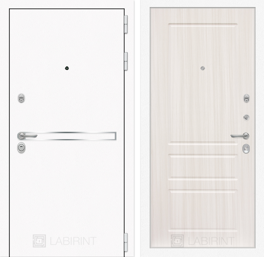 Отделка снаружи: Металл с покрытием «Шагрень» белая, зеркальная вставка из нержавеющей стали