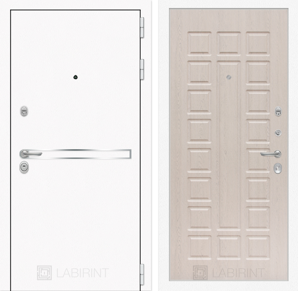 Отделка снаружи: Металл с покрытием «Шагрень» белая, зеркальная вставка из нержавеющей стали