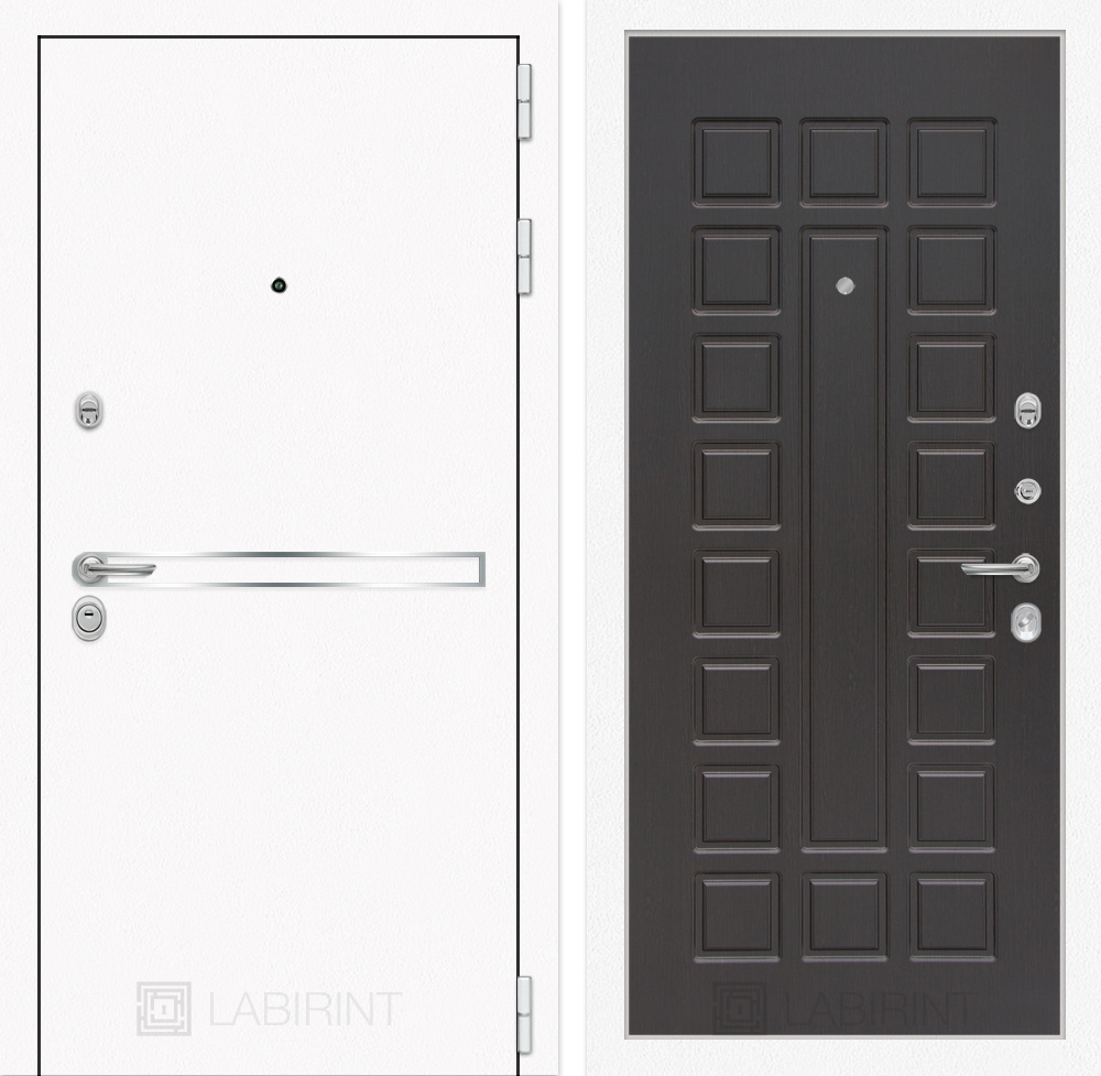Отделка снаружи: Металл с покрытием «Шагрень» белая, зеркальная вставка из нержавеющей стали