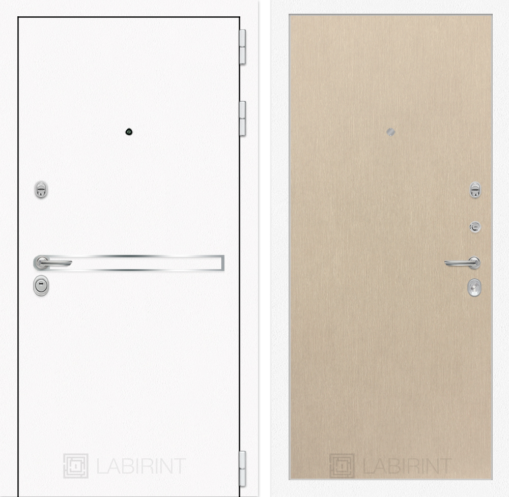 Отделка снаружи: Металл с покрытием «Шагрень» белая, зеркальная вставка из нержавеющей стали