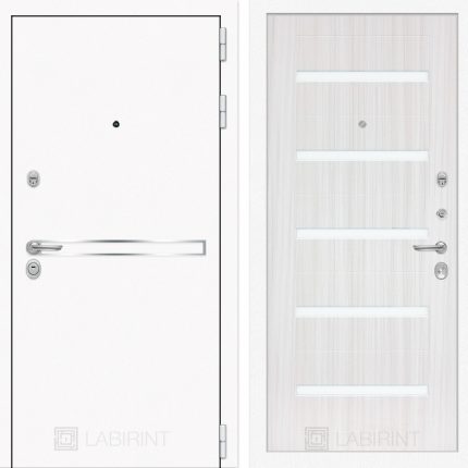 Отделка снаружи: Металл с покрытием «Шагрень» белая, зеркальная вставка из нержавеющей стали