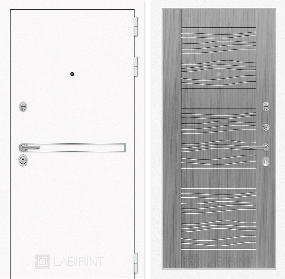 Отделка снаружи: Металл с покрытием «Шагрень» белая, зеркальная вставка из нержавеющей стали